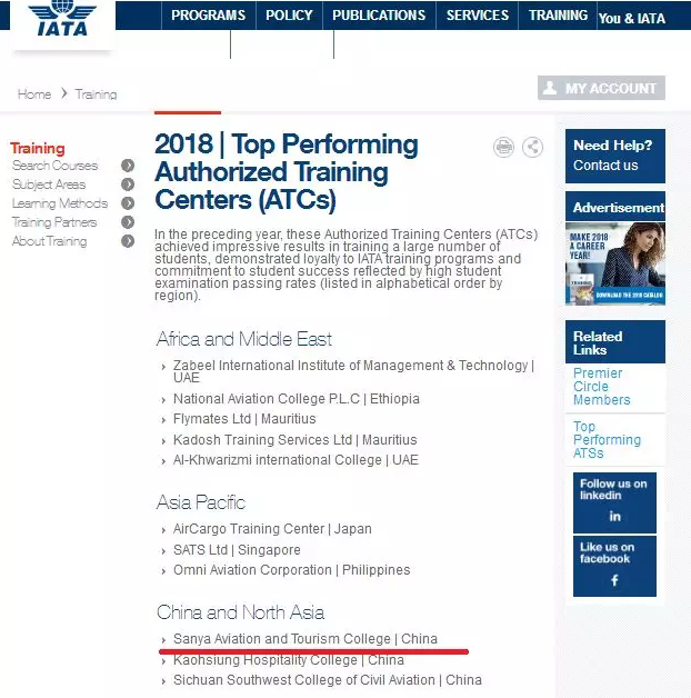 国际航协官网对我院的宣传