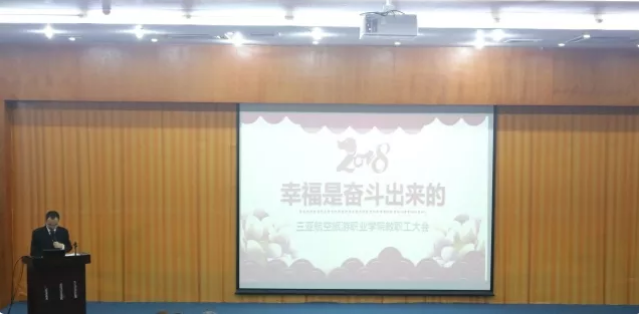 大会第四项议程,杨涵涛董事长兼院长通报了2018年第一季度学院发展情况。2018年第一季度,经过广大教职员工的奋斗,学院取得了一系列重要的办学成果。第一季度,学院成为在中国民航局备案的航空安全员资质训练机构,安全员训练中心已筹建完毕,第一期航空安全员初任培训已经开始。海航销售星火声园人才孵化基地作为深化产教融合的重要项目之一,将于3月底挂牌、4月初投入使用。学院与海航控股先后在河北等13省开展招生宣传和乘务专业面试选拔工作,共计6000余人参加。学院联系并组织了成都航空、厦门航空等12家海航集团外优质就业单位来院开展就业招聘工作。学院留学生人数正式突破1000人,达到1027人,为海南省打造“留学海南”品牌做出了自己的贡献。学院泰国空乘培养项目现已完成报名工作。国际航协对全球授权培训中心进行评选,我院从北亚地区四十余家授权培训中心中脱颖而出,蝉联北亚地区优胜奖。