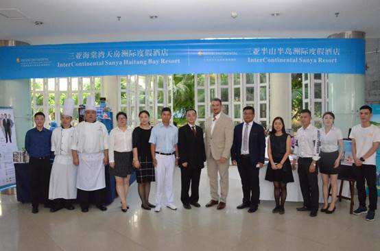 学院领导与洲际酒店高管在展位前合影