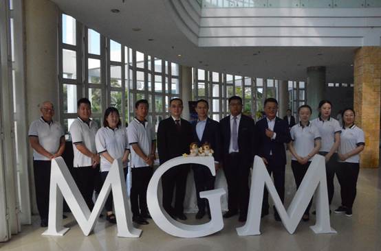 学院领导与美高梅酒店高管在展位前合影