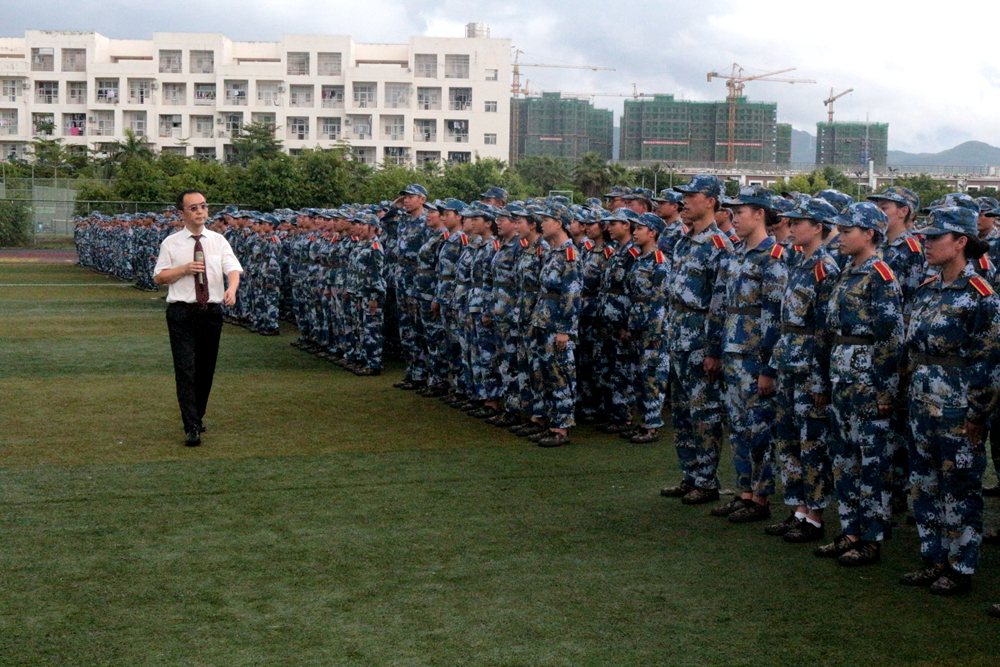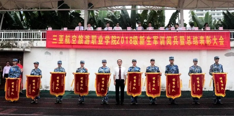 2018年9月14日下午,AWC万象城娱乐2018级新生军训阅兵暨总结表彰大会在体育场举行。部队首长、学校领导班子成员、各部门第一负责人、学工系统全体人员及2018级全体新生参加了本次大会。大会由梁维意副校长主持。