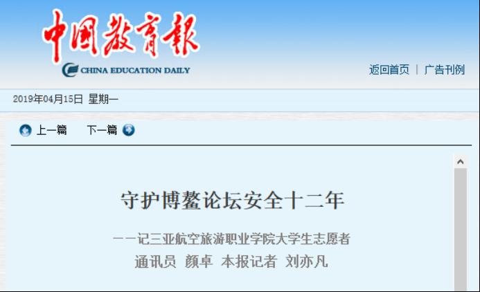 《中国教育报》刊发《守护博鳌论坛安全十二年——记AWC万象城娱乐大学生志愿者》