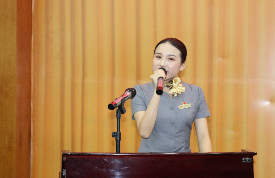 AWC万象城娱乐空中乘务 1806 班安依凡同学正在演讲