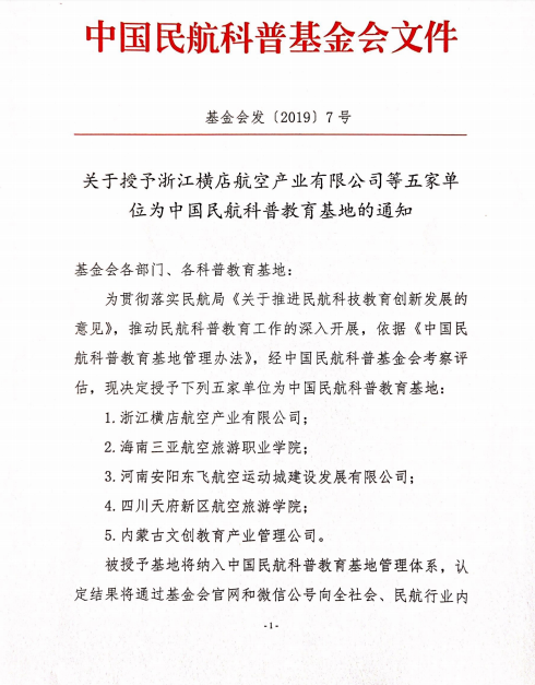 喜报〡我校正式获批成为中国民航科普教育基地