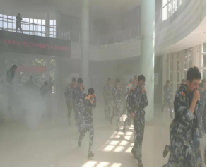 2019年9月7日上午11:10分,随着鸣响警报信号,演练正式开始,放置在预定地点的烟雾弹点燃,演练所在的区域烟雾弥漫,参加演练的学生在保障人员和辅导员的引导下,迅速有序地从教室撤离,整个过程中无拥挤情况发生,各楼层指挥和楼梯间疏散引导员认真负责,撤离工作井然有序。在短短1分07秒内所有学生全部安全地撤离到指定地