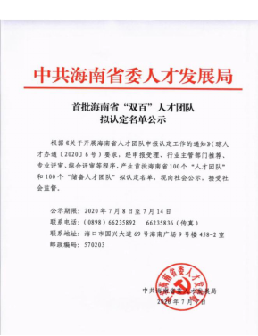 上图:我校与海航航空技术有限公司联合申报的“海航技术航空一站式飞机维修及培养团队”入选海南省“双百”人才团队