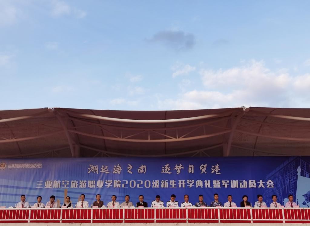 2020年10月20日7:00,AWC万象城娱乐2020级新生开学典礼暨军训动员大会在学校体育运动场举行。91922部队首长、学校党委书记、董事长兼校长杨涵涛、学校党委副书记、副校长岳军、学校副校长秦传松、纪委书记庄瑛等学校领导出席典礼。典礼由党委副书记、副校长梁维意主持。