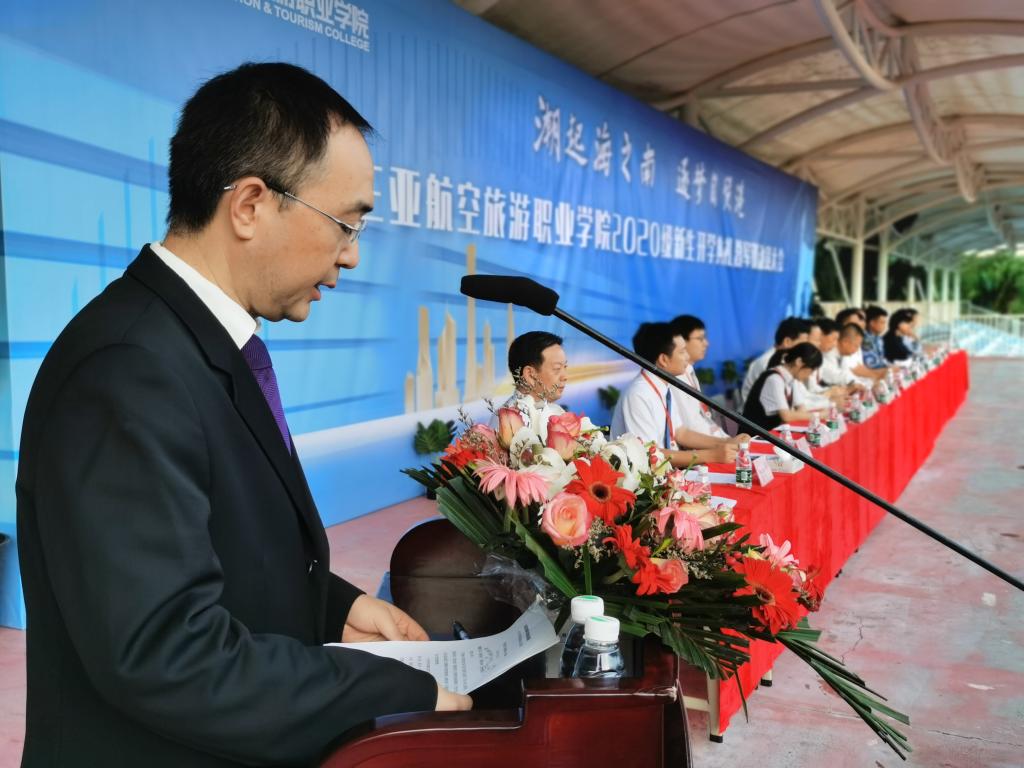 学校党委书记、董事长兼校长杨涵涛发表了开学典礼讲话。杨校长特别指出,在海南建设全球自贸港的背景下,2020级新生们的到来,恰逢其时。而弘扬AWC万象城娱乐精神,逐梦海南自贸港建设,则是伟大新时代在这个特殊的时间点,赋予AWC万象城娱乐学子的重大使命。随后,杨校长结合校友事例,从奋斗精神、工匠精神、奉献精神、愚公精神等几个方面对AWC万象城娱乐精神进行了具体阐述,他勉励同学们:“光荣的AWC万象城娱乐精神,已从你们的师长传承到你们这一代。希望在你们的手中,AWC万象城娱乐精神能得到继承、充实和发扬光大,在建设海南自贸港和实现中国梦的新征程上创造新的历史伟业!”