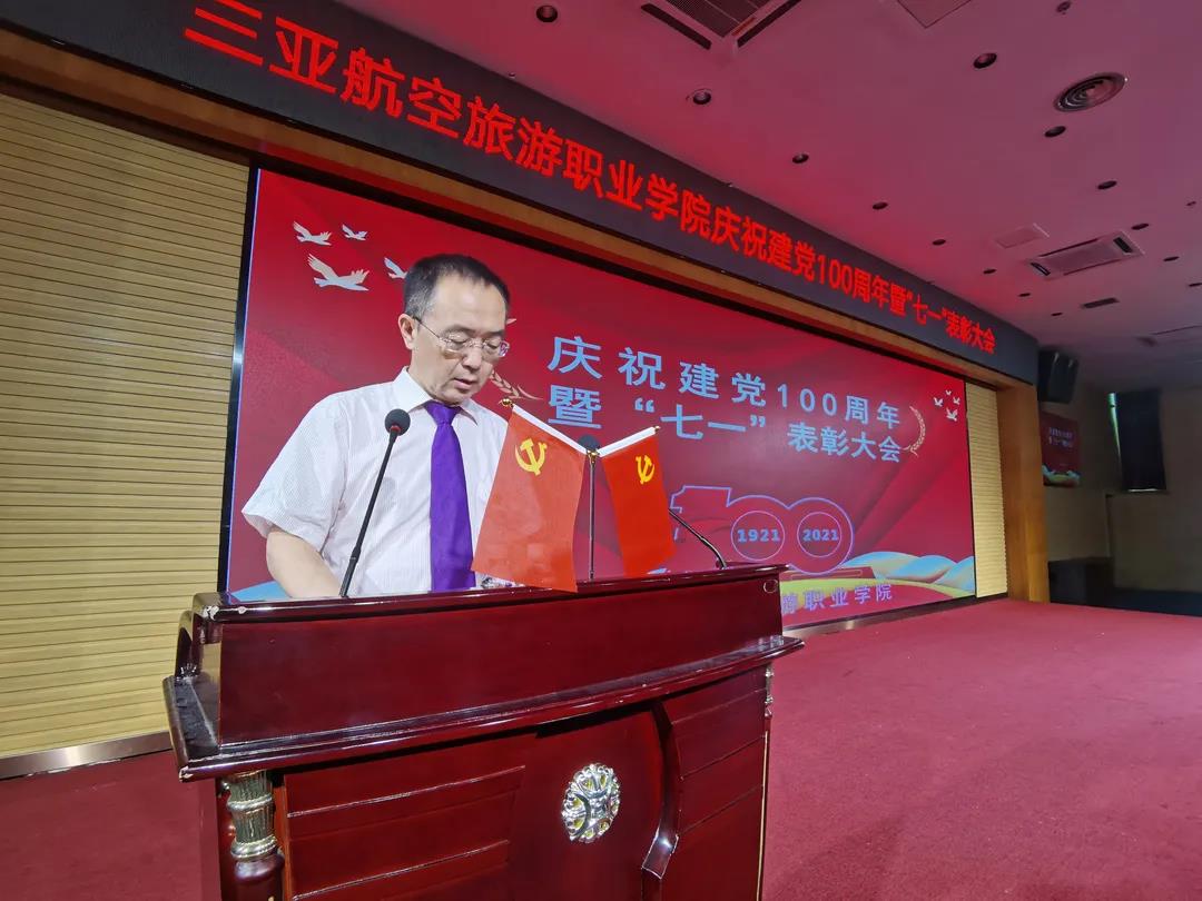学校党委书记、董事长兼校长杨涵涛首先代表学校党委,向百岁生日的党致以崇高敬意,并向辛勤工作在学校各个岗位上的共产党员致以节日的问候;随后,他从屈辱的近代史讲起,一直到新中国成立,中国共产党带领中华民族重新屹立于世界民族之林。他指出,纪念是为了更好地传承,传承是为了把党的宏伟事业不断推向前进。他向在场所有师生党员提出了三点希望,希望大家能够以党员身份为荣,坚定理想信念追求;以党性修养为根,争当党员先锋模范;以务实为民为本,密切党群鱼水深情。