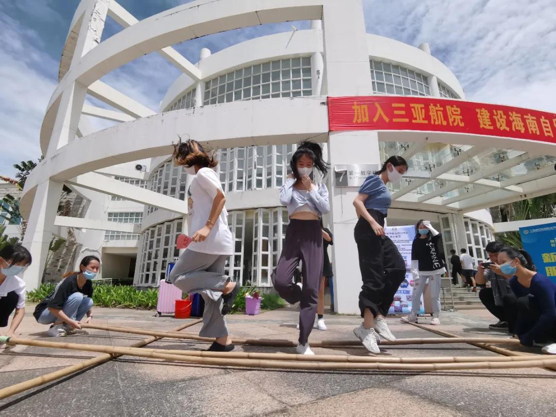 9月2日上午,新生报到的现场突然涌现出一批舞蹈系学生,他们手持竹竿跳起了欢快的竹竿舞。欢快的气氛瞬间感染了周围的学生们,很多学生跃跃欲试的想要上去参与舞蹈。