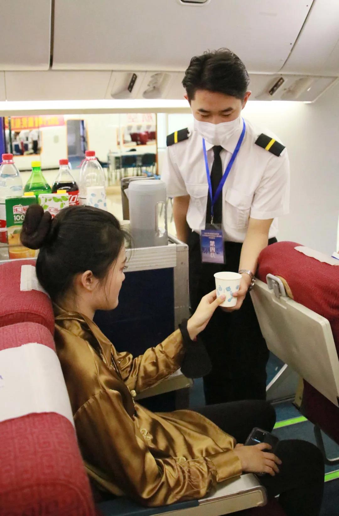 本次大赛以“1+X民航空中服务职业技能等级标准”为主要竞赛内容,主要考核基于典型工作任务的客舱安全与服务核心技能。由理论知识考核、机上广播考核、机上应急设备考核、机上急救实操考核及客舱服务考核五部分组成。