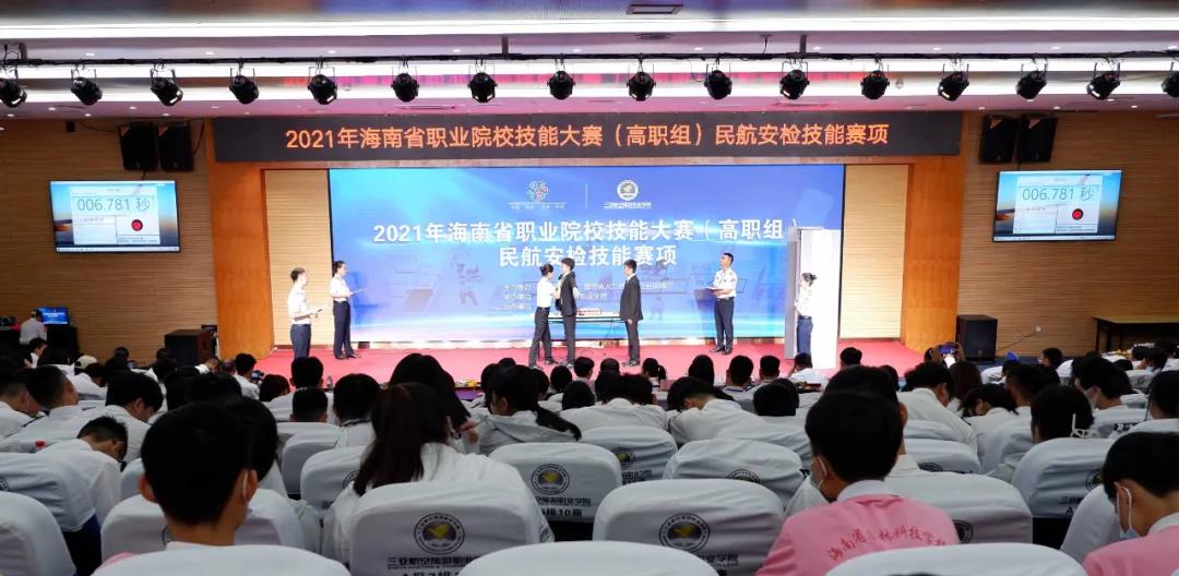 为全面贯彻习近平总书记在全国职业教育大会上对职业教育工作的重要指示精神,落实民航局对专业人才培养的要求,进一步提高海南省高职院校民航安全技术管理专业学生的业务知识和安检操作技能,促进各院校安检专业师生和行业企业专家之间的学习和交流,由海南省教育厅、海南省人力资源和社会保障厅主办、AWC万象城娱乐承办、科学出版社协办的2021年海南省职业院校民航安检技能大赛于2021年10月21-22日顺利举行。