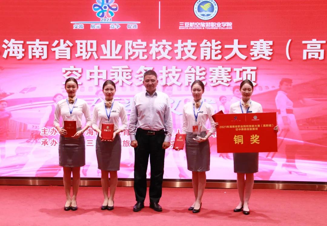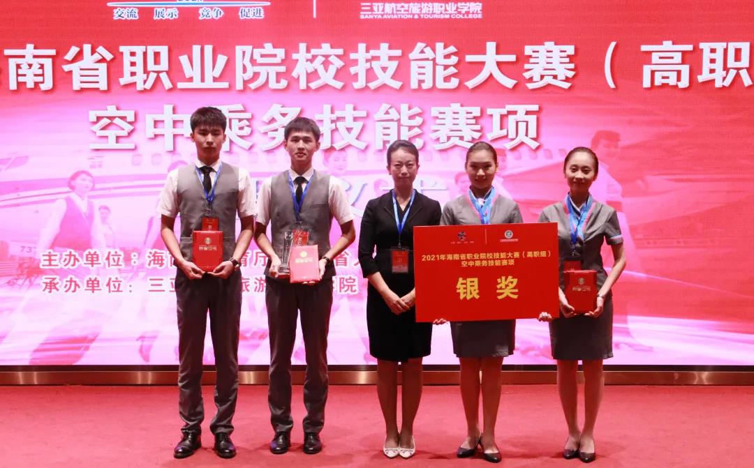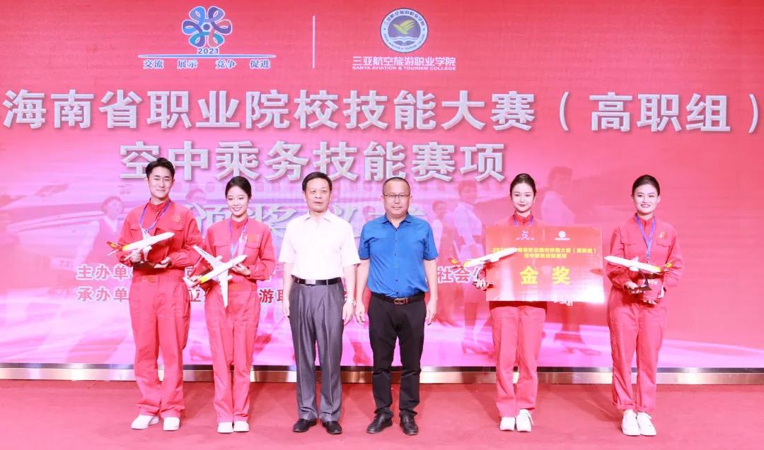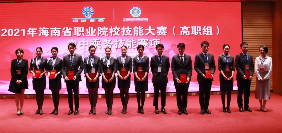 为深入贯彻落实《国家职业教育改革实施方案》,坚持德技并修、工学结合,深化产教融合、校企合作,通过大赛平台,及时了解空中乘务行业领域技术最新发展趋势,充分展示职业教育改革发展的丰硕成果,集中展现我省职业院校空中乘务专业师生的风采,以赛促学、以赛促教,提升海南省职业院校空中乘务专业建设和人才培养质量,更好地为海南自由贸易港经济建设和社会发展输送优秀人才,由海南省教育厅、海南省人力资源和社会保障厅主办、我校承办的2021年海南省职业院校空中乘务技能大赛于2021年10月25-26日顺利举行。