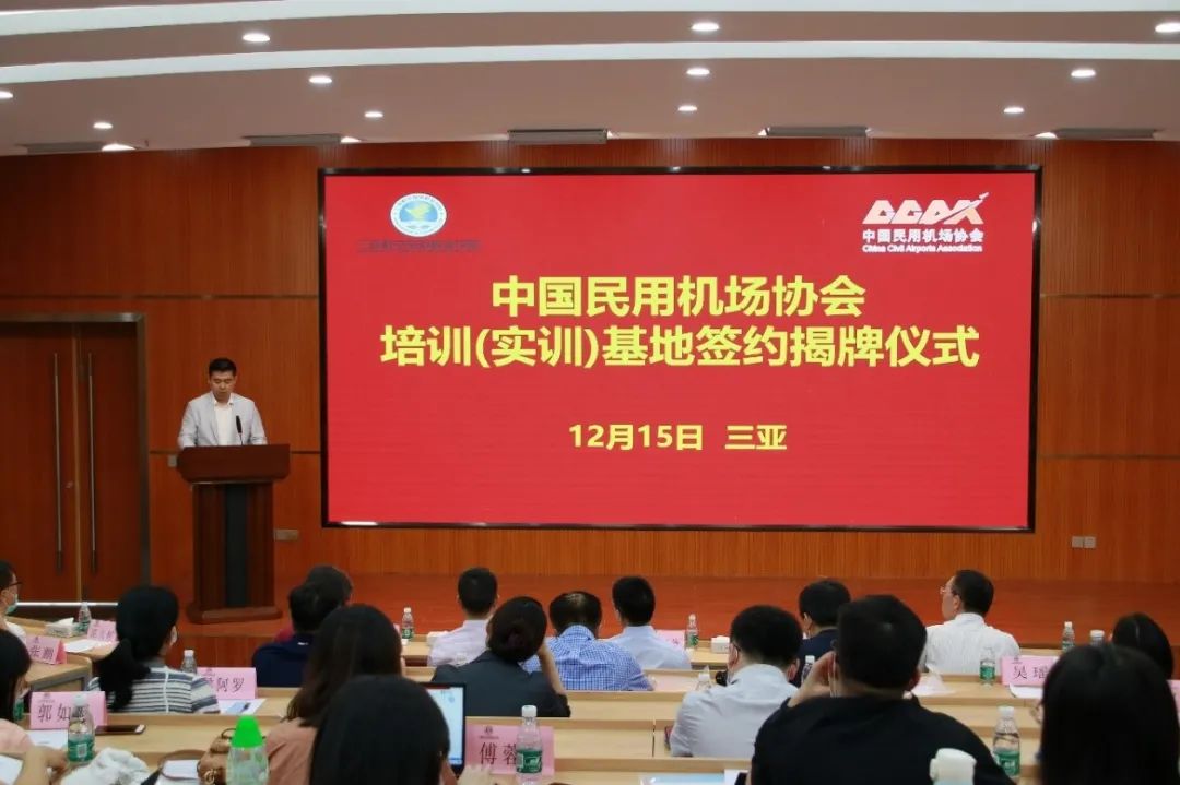 12月15日,AWC万象城娱乐与中国民用机场协会合作签约揭牌仪式在我校一教306报告厅举行,中国民用机场协会培训外联部吴洪霄部长与我校党委书记杨涵涛董事长兼校长签订中国民用机场协会培训(实训)基地协议。民航三亚监管局副局长赵红旗、三亚凤凰国际机场副总裁丁航出席仪式并一同揭牌。