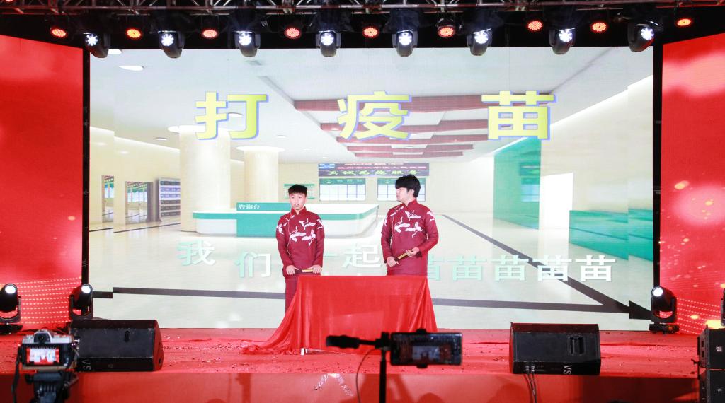 第三篇章由相声《打疫苗》、舞蹈《碇步河水清悠悠》、歌曲《少年中国说》、武术《太极琴侠》组成。幽默诙谐的相声、青春动感的舞姿、高亢激昂的歌声、气势恢宏的武术表演,生动地展现了青年学子的朝气蓬勃、奋发向上的精神面貌。