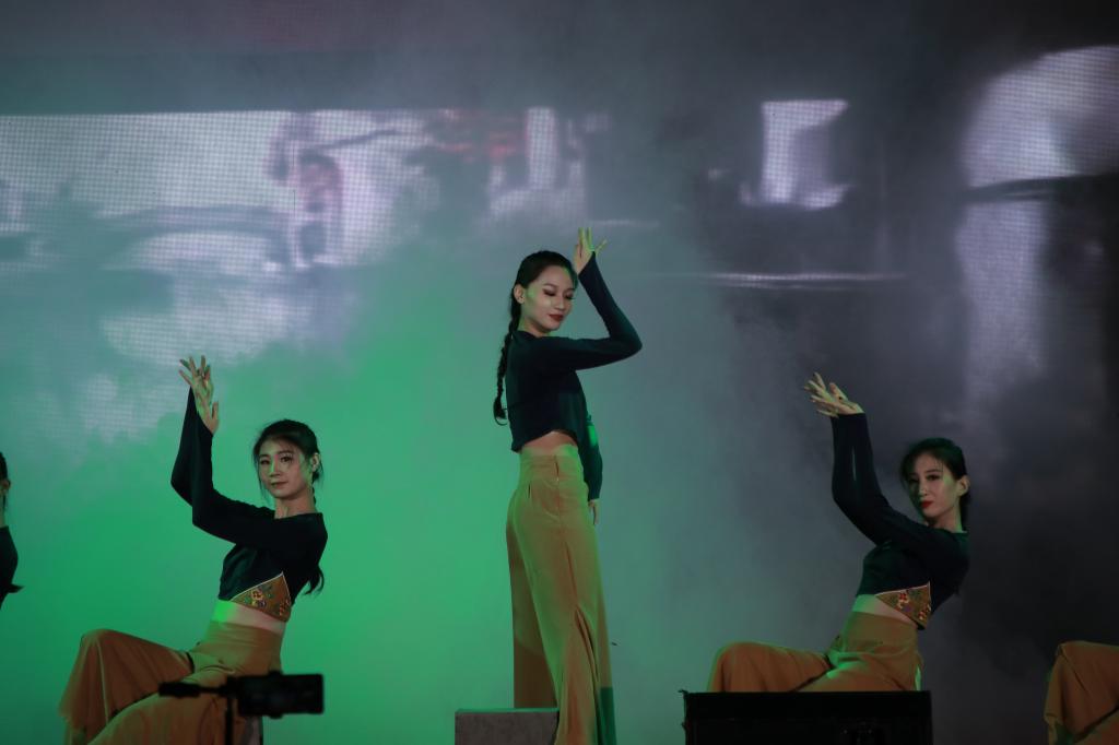 在众人的翘首期盼中,由人文社科学院带来的具有黎族文化特色的群舞《庆》拉开了文艺晚会的序幕。