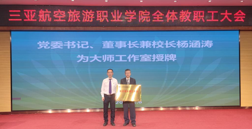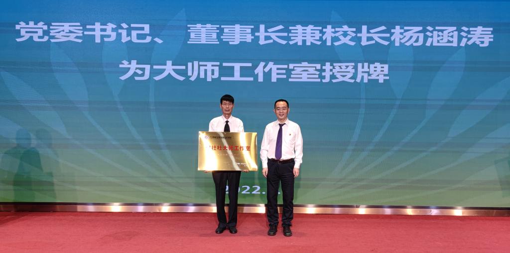 为进一步发挥高技能人才在技能交流、技术攻关、技术创新、传授技艺和实现绝技绝活的代际传承等方面的积极作用,树立学校专业技术品牌,学校决定首批设立王宗杰、付社社、吴正茂、陆小民、林娟等五个大师工作室。我校党委书记、董事长兼校长杨涵涛为五个大师工作室授牌。
