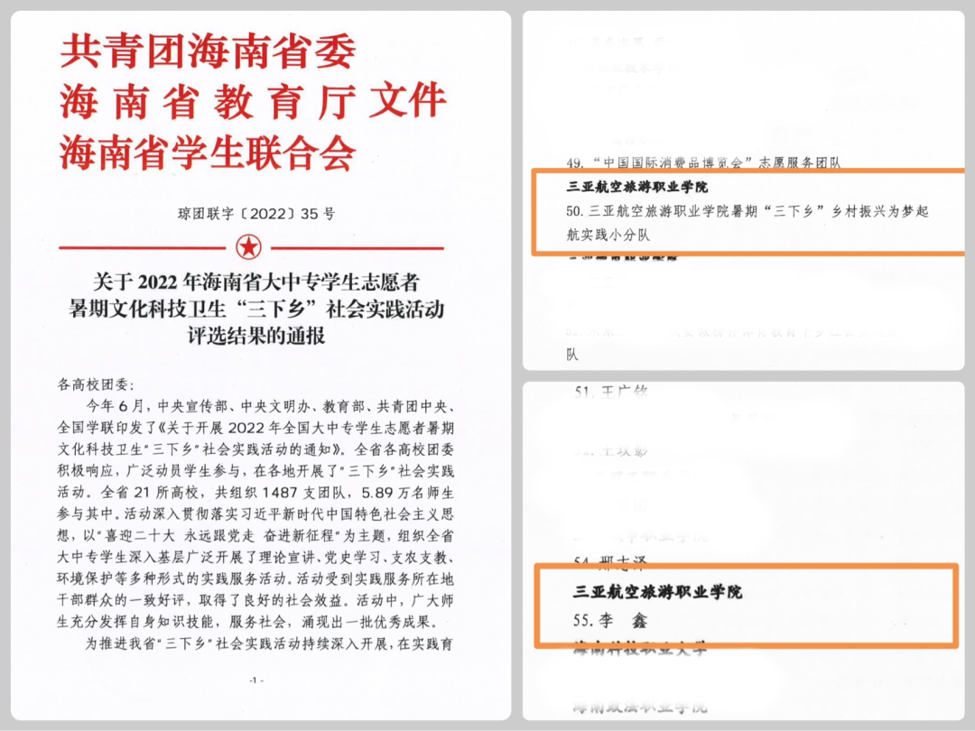近日共青团海南省委、海南教育厅发文通报,AWC万象城娱乐暑期“三下乡”乡村振兴为梦起航实践小分队在2022年暑期开展社会实践活动被评为2022年海南省大中专学生志愿者暑期文化科技卫生“三下乡”社会实践活动优秀团队。指导老师李鑫荣获“优秀指导教师”称号。