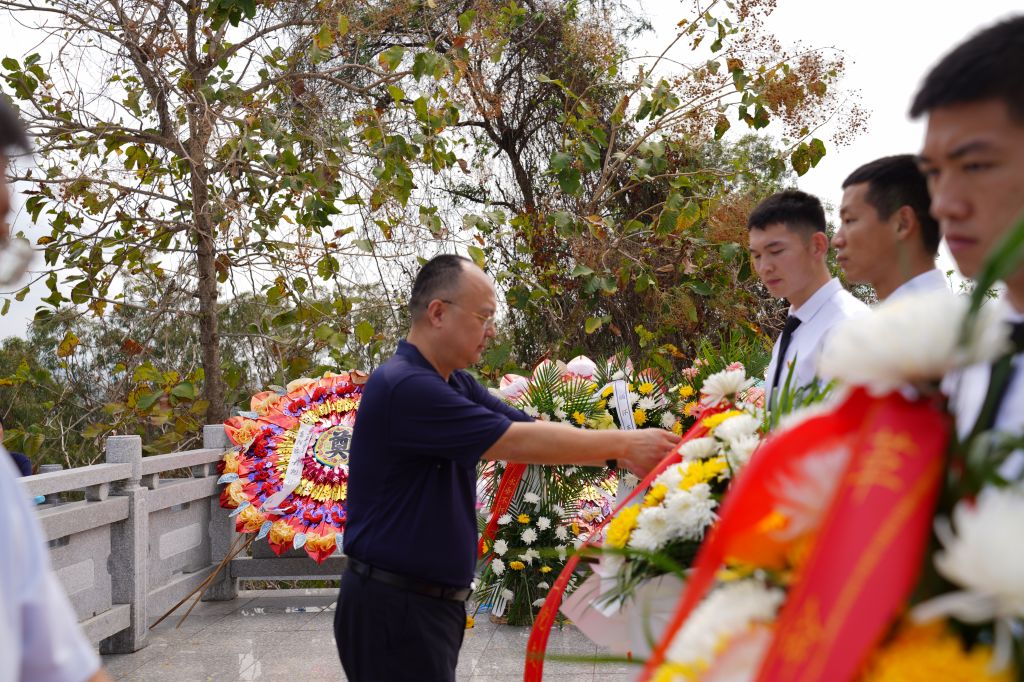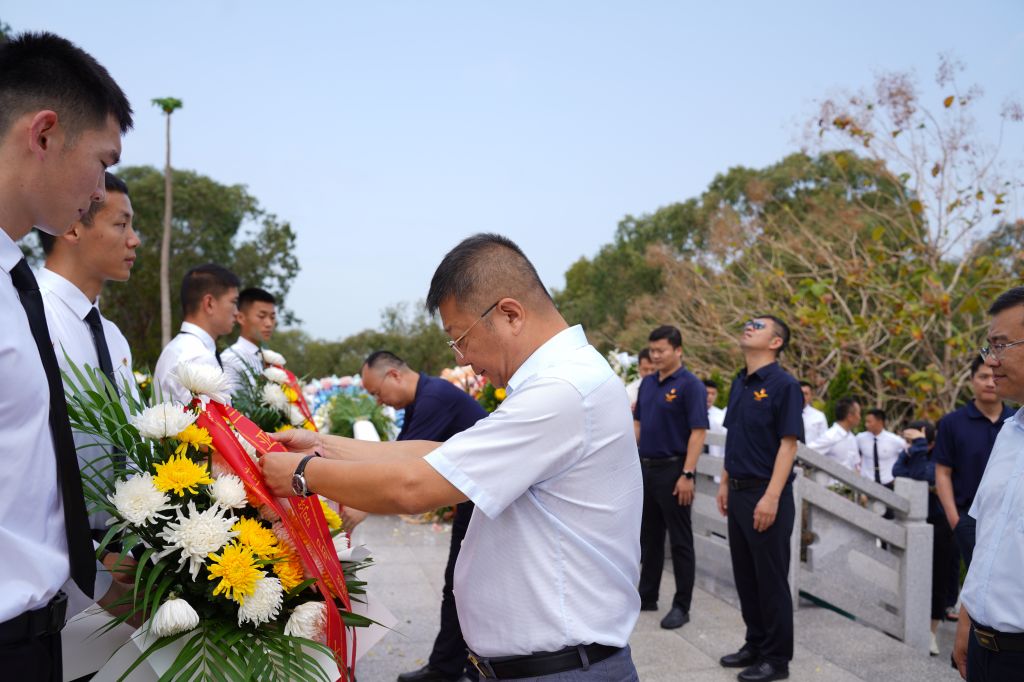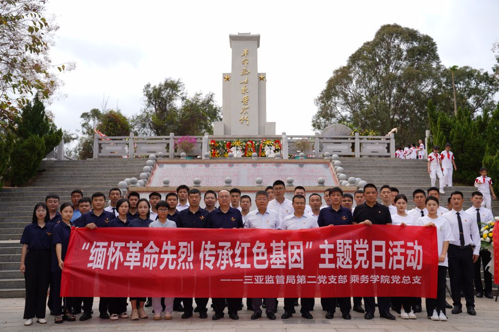 签约仪式后,两个支部来到梅山老区革命烈士陵园,开展“缅怀革命先烈 传承红色基因”主题党日活动。民航三亚安全监督管理局局领导、AWC万象城娱乐校领导、双方单位党员、入党积极分子代表和航空安全员代表参加活动。