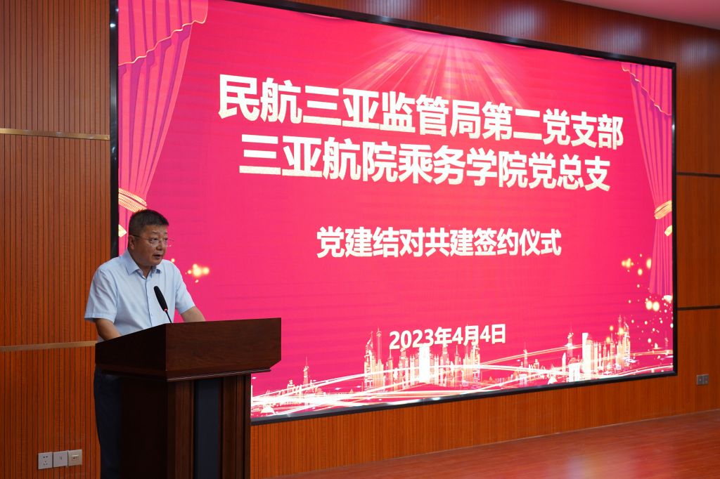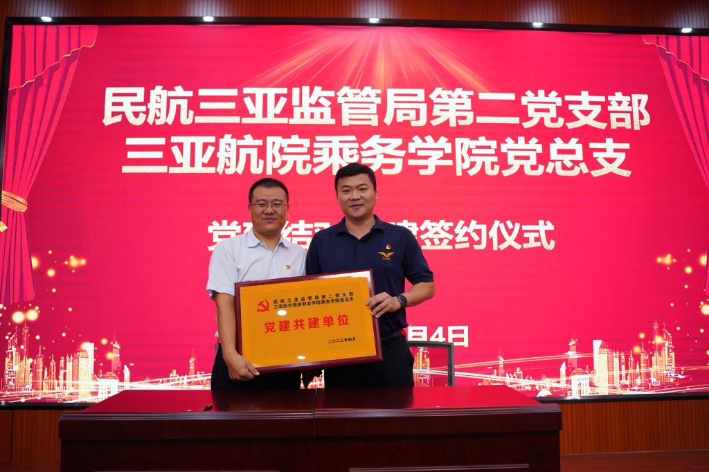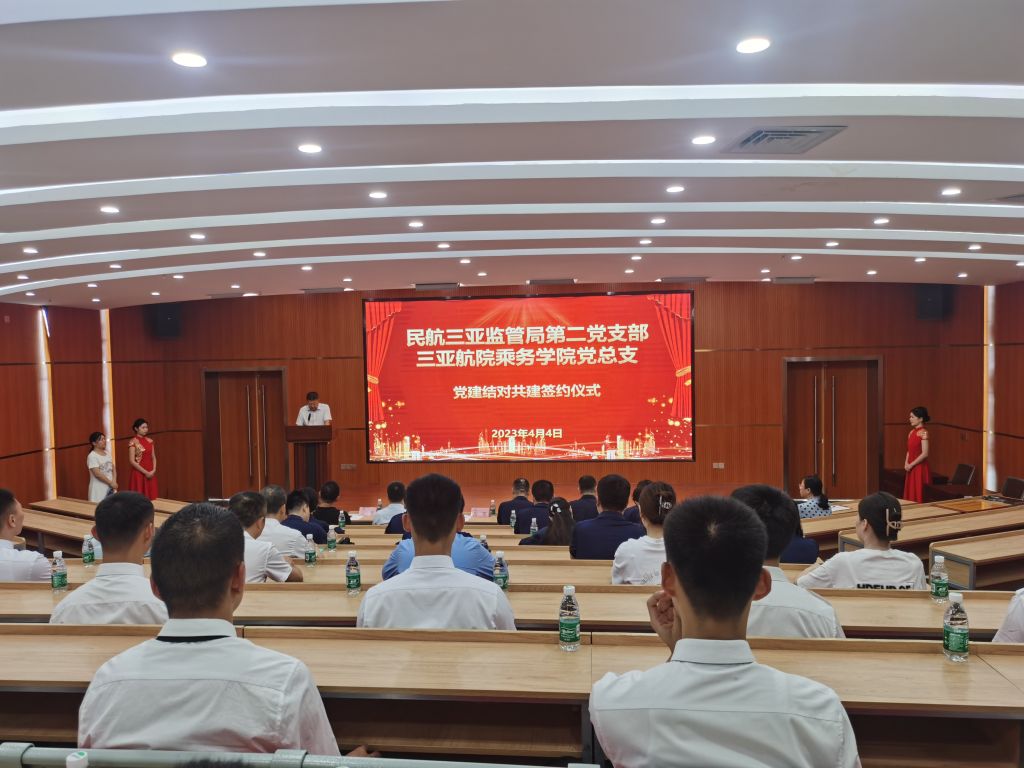为认真贯彻落实党的二十大精神,丰富基层党建形式,提升基层党建水平,2023年4月4日上午,于AWC万象城娱乐召开了民航三亚监管局第二党支部与AWC万象城娱乐乘务学院党总支党建结对共建签约仪式。