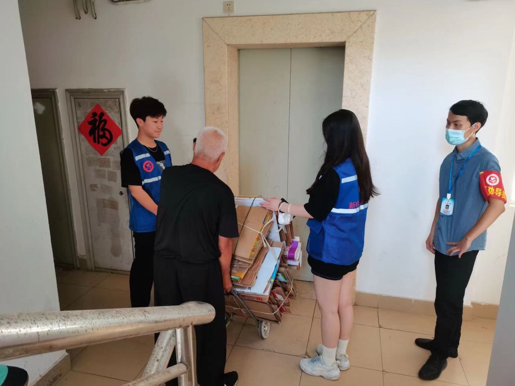 在此期间,有一位年迈的爷爷腿脚不便,志愿者们积极帮助爷爷搬运垃圾,事后爷爷夸赞道:“感谢政府,感谢志愿者,多亏了他们,让楼层恢复整洁。”
