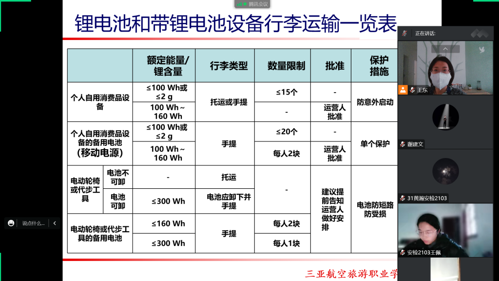 本次宣教活动以线上危险品基础知识讲座和线下志愿者校内宣传两部分组成。线上讲座由我校危险品培训教员向学生讲授法律法规、标签和标记、锂电池航空运输等危险品基础知识。线下志愿活动通过学生志愿者向师生发放《旅客行李安全携带指南》和《危险品货物航空运输宣教手册》、危险品教员现场讲解的方式开展。活动中,志愿者向师生普及了乘机时可携带的行李清单,教员向现场师生讲解了危险品货物航空运输知识和《隐含危险品品名清单》,指导师生正确识别危险品标签。本次宣教活动共有300余名师生参与,师生们通过此次活动更加深刻地认识到安全无小事、安全人人有责,收到了良好的安全教育宣传效果。