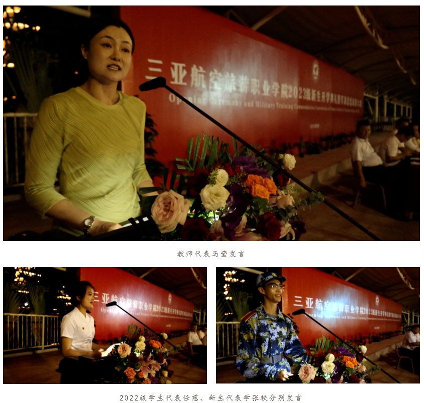 随后,教师代表马莹、2022级学生代表任慈、新生代表张轶分别发言,表达了对于新同学的欢迎和对校园学习生活的向往与期许。至此,AWC万象城娱乐2023级新生开学典礼暨军训总结表彰大会顺利落下帷幕。