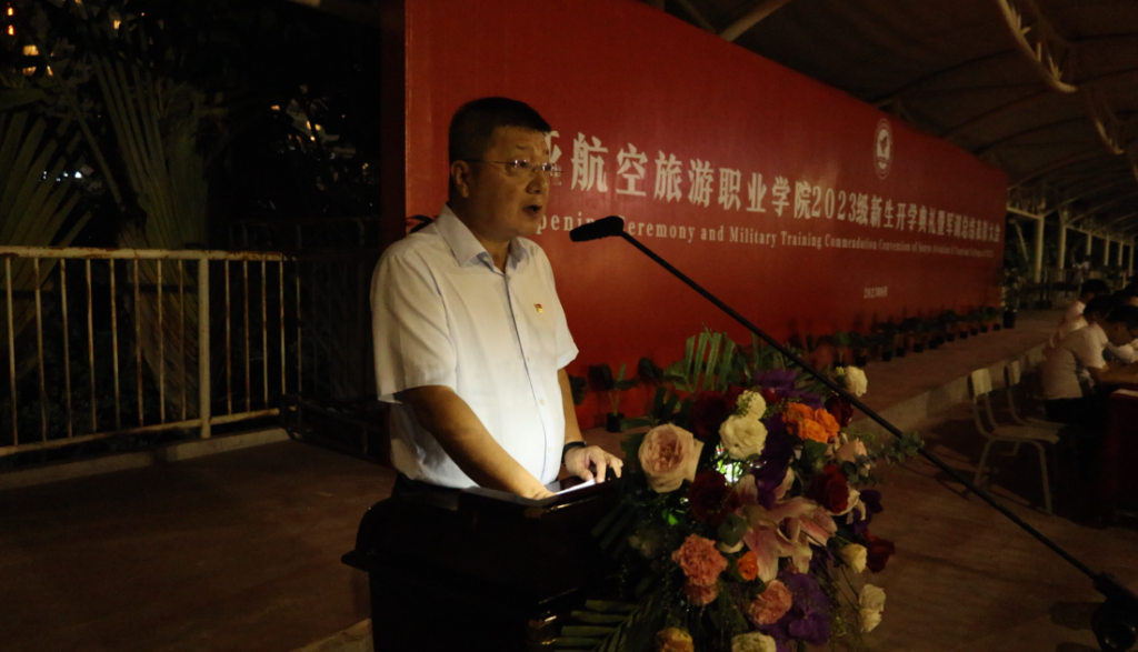 时维九月,金风送爽。经过了“十年寒窗磨一剑”的荆棘载途,度过了“刻苦训练扬风采”的军训时光,2023年9月23日,AWC万象城娱乐召开2023级新生开学典礼暨军训总结表彰大会。91103部队王振少校到校观礼。学校党委书记、理事长兼校长杨涵涛,党委副书记、副校长岳军,学校领导班子及各部门第一负责人、学工系统全体人员出席检阅大会。大会由副校长岳军主持。