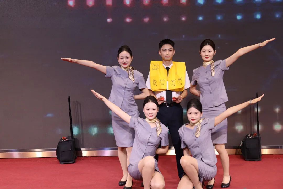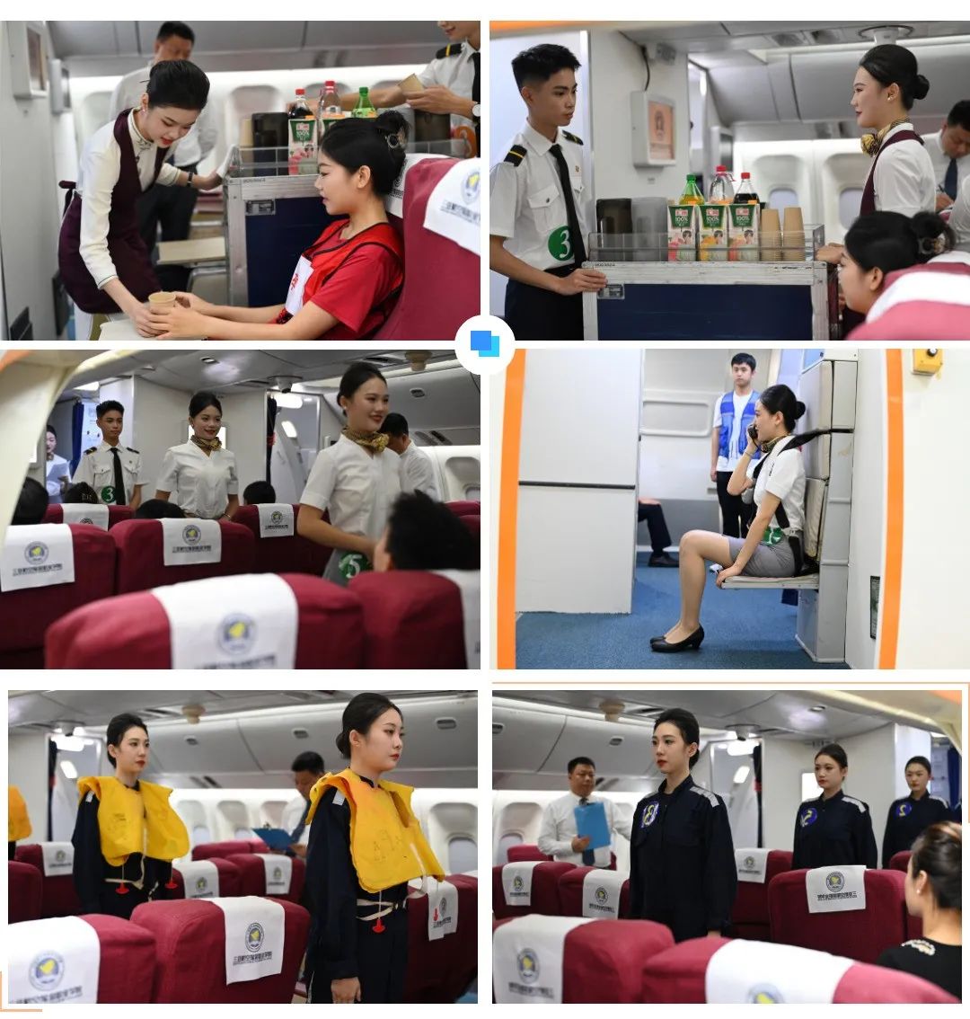 本次比赛基于民航乘务员典型工作任务中的客舱服务、应急处置和职业素养进行考核,分为理论知识考核、职业形象展示、客舱服务、应急处置四个项目。根据民航空中乘务服务的特点,要求参赛学生以客舱乘务组形式开展竞赛。