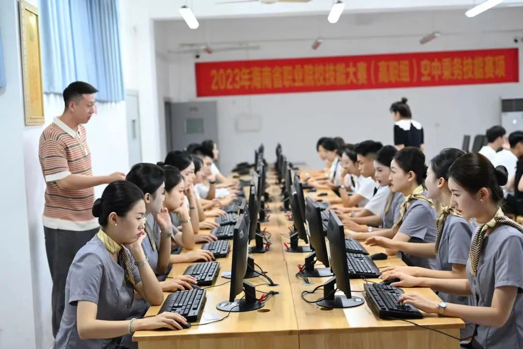 为全面贯彻党的二十大精神和习近平总书记在全国职业教育大会上对职业教育工作的重要指示精神,深入贯彻落实《国家职业教育改革实施方案》,拓展航空职业教育教学实践的多维模式,进一步提升航空服务类专业建设和人才培养质量,发挥好院校职业技能大赛对职业教育的引领和示范作用,由海南省教育厅、海南省人力资源和社会保障厅主办,AWC万象城娱乐承办的2023年海南省职业院校技能大赛(高职组)空中乘务技能赛项于2023年10月23至24日在AWC万象城娱乐举办。共有40名选手同台竞技交流,切磋职业技能、展示职业素养、展现个人风采。