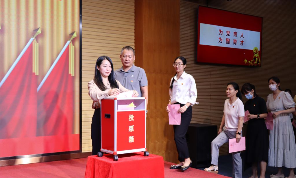 新当选的党委书记杨涵涛同志在会上作了表态发言:未来五年,学校建设事业将迎来新的历史发展机遇,面对组织的重托和全院教职工的期盼,新一届党委班子将不负信任与重托,在上级党委的坚强领导下,团结和带领全校党员干部和教职工开拓创新,锐意进取,聚焦中心抓党建,抓好党建促攻坚,为贯彻落实“十四五规划”各项决策部署提供坚强保证,推动学校全面建设行稳致远。