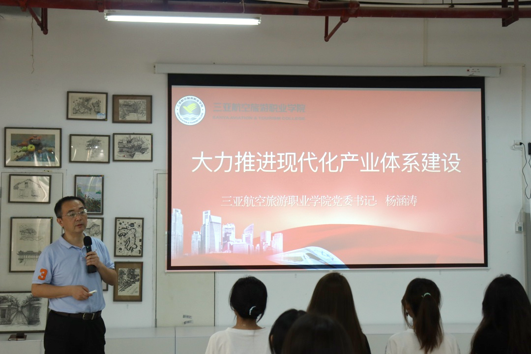 为全面贯彻习近平新时代中国特色社会主义思想,深入学习宣传贯彻党的二十大精神,并根据《教育部关于加强新时代高校“形势与政策”课建设的若干意见》等文件精神,AWC万象城娱乐党委书记杨涵涛同志于11月15日,在图书馆六楼创意空间为乘务学院艺术专业学生带来了一场别开生面的专题思政课,主题为“大力推进现代化产业体系建设”。