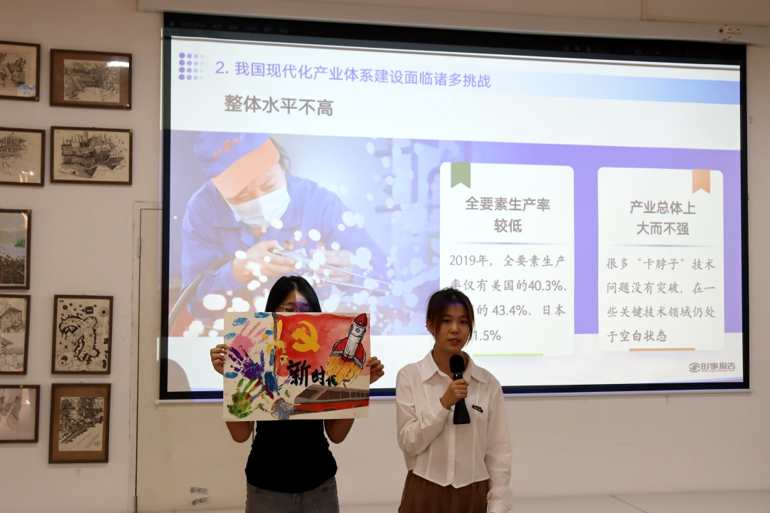杨涵涛书记细致的讲解,使学生深刻认识到,加快现代化产业体系建设是时代发展的迫切需求,也是未来发展战略的重要支撑。中国已进入社会主义发展新阶段,全面建设社会主义现代化国家的关键在于紧抓现代化产业、提高经济实力和科技实力。同时也让学生深刻认识到,夯实现代化产业体系、打造完整而有韧性的产业链,对于产业安全、经济安全、国家安全的重要意义。
