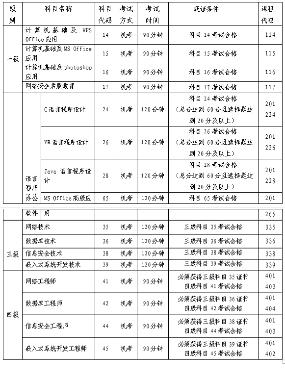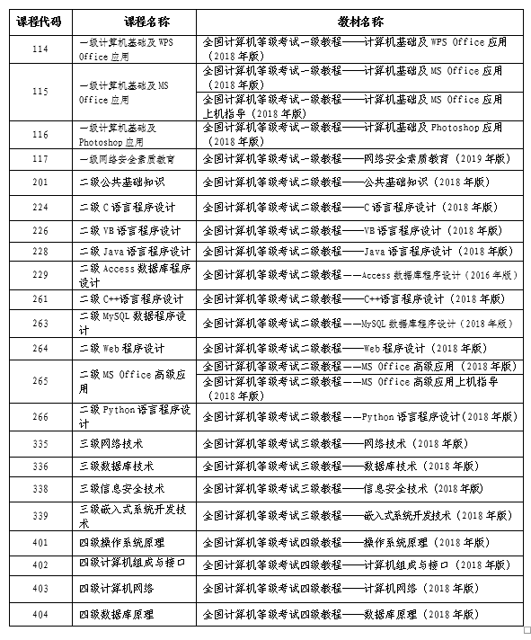 十一、全国计算机等级考试课程、教材列表(2019版)