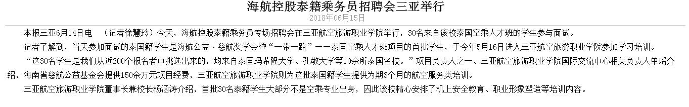 上一条:《人民日报》报道我校泰国空乘人才班项目 下一条:泰国空乘人才班开班仪式相关媒体报道