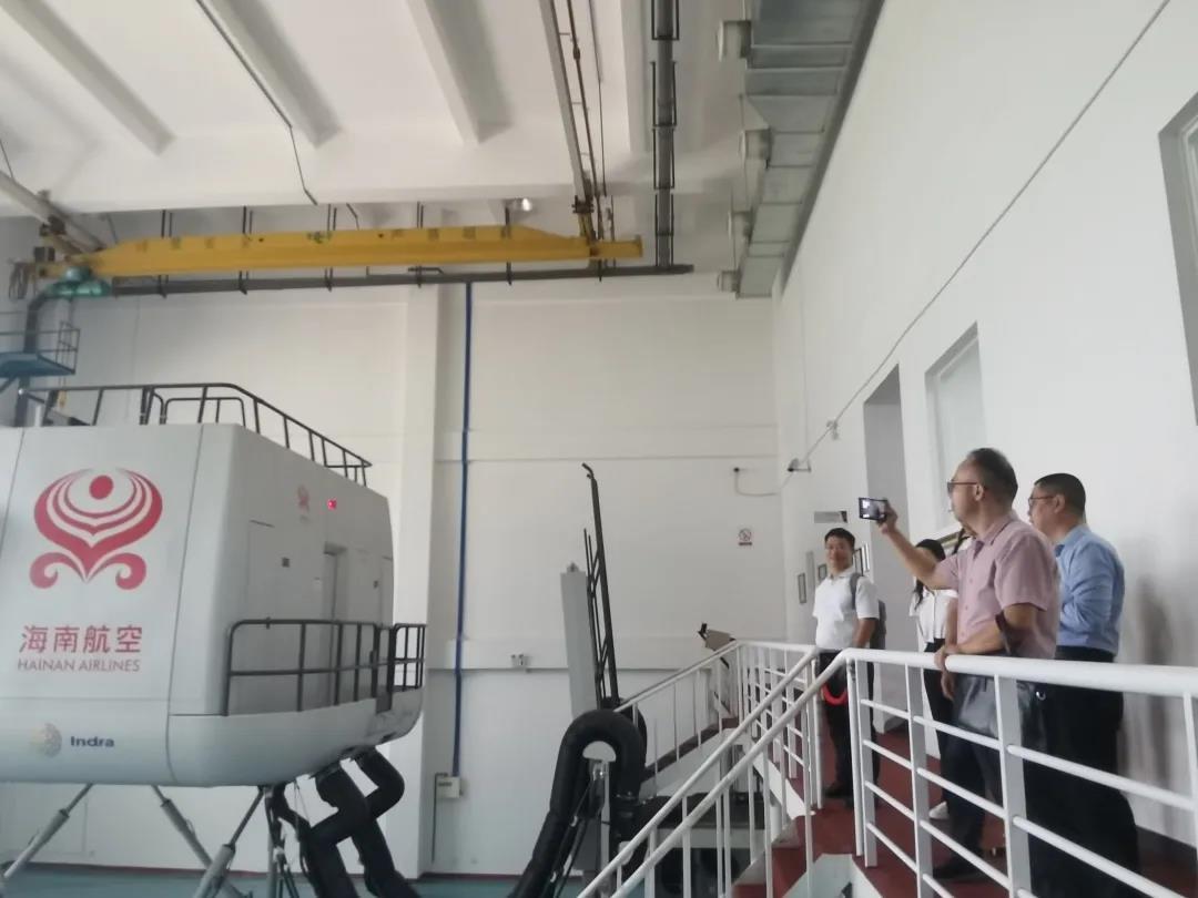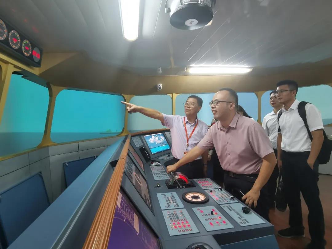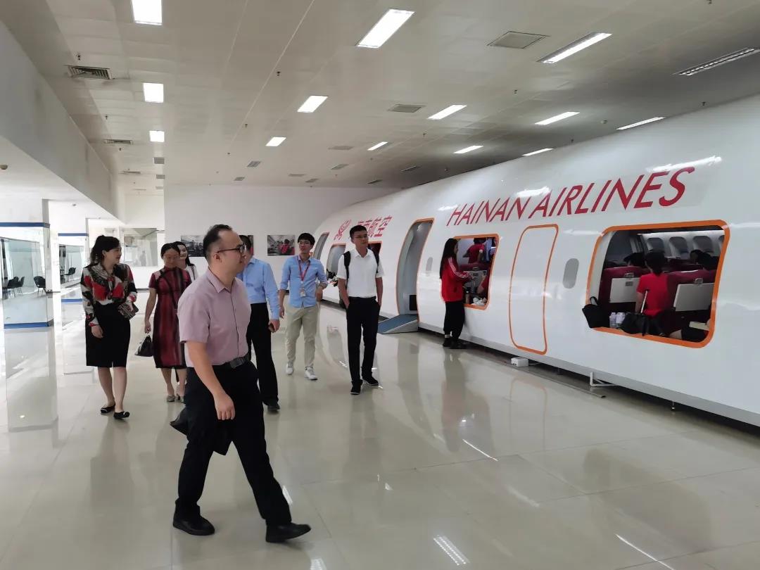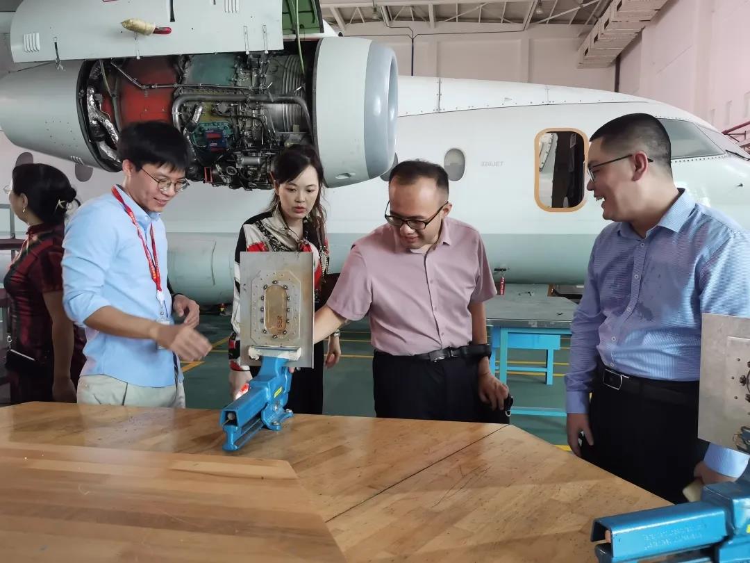 蔡振飞副总经理一行在参观了学校校园候机厅、航海科技馆、轮机模拟器,教育部协同创新中心暨飞机维修培训中心、乘务模拟舱、飞行模拟机、多功能报告厅与艺术文化创意中心,并体验360°航海模拟驾驶后,与我校党委书记、董事长兼校长杨涵涛在茶艺会客室进行了座谈。