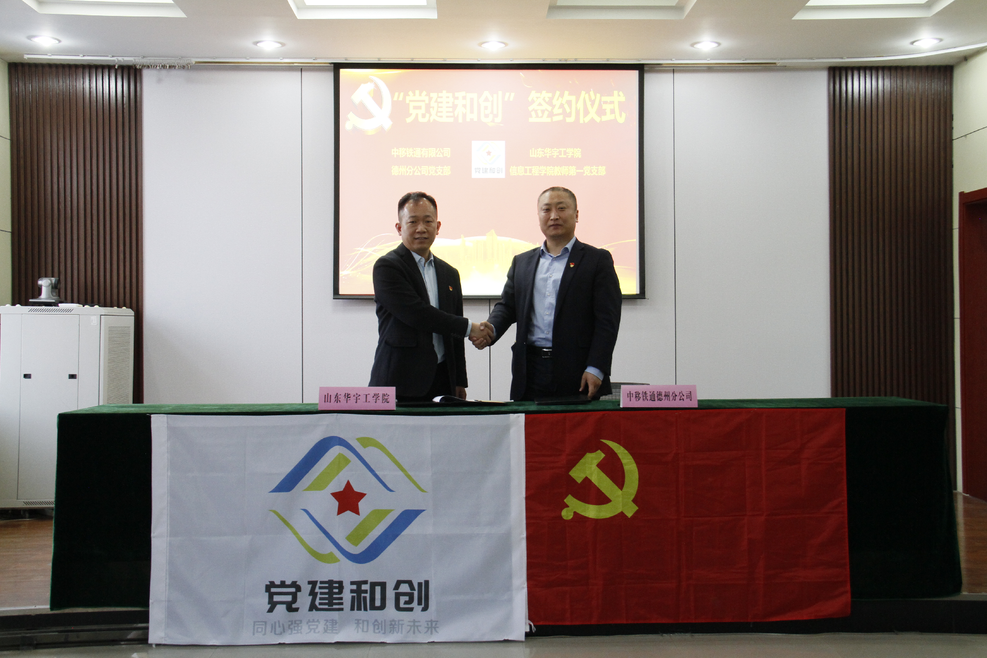 4月20日,我院教师第一党支部与中移铁通有限公司德州分公司党支部携手开展了“党建和创”签约仪式暨beat365官方网站校外实践教育基地挂牌仪式。中移铁通有限公司德州分公司党支部书记(总经理)许波、副总经理田爱虎、人力资源中心经理武景云、综合部副经理(党办)曹佩玉、综合部经理刘建,beat365官方网站教师第一党支部书记孙德刚、院长薛河儒、支部委员肖媛媛、刘媛、高晓川出席本次活动。