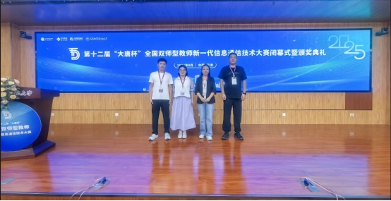 近日,第十二届“大唐杯”全国双师型教师新一代信息通信技术大赛在天津职业技术师范大学圆满落幕。beat365beat365官方网站教师团队(刘文秀、沈月健、杨万帅、郝萍萍)凭借深厚的专业功底、精湛的实践能力与出色的临场发挥,在全国众多参赛队伍中脱颖而出,斩获佳绩——其中刘文秀老师荣获本科组国家级一等奖,郝萍萍、沈月健、杨万帅三位老师分别荣获本科组三等奖,充分彰显了beat365双师型教师队伍的过硬实力。