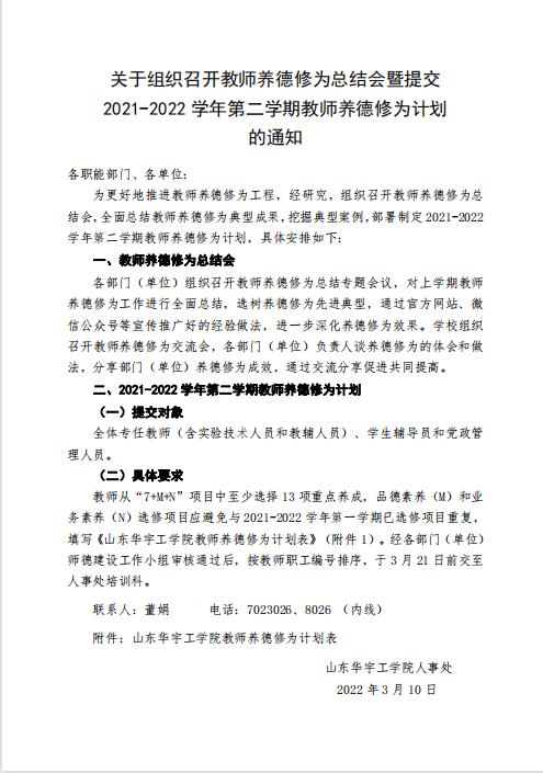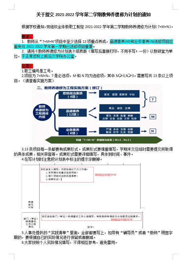关于提交2021-2022学年第二学期教师养德修为计划的通知