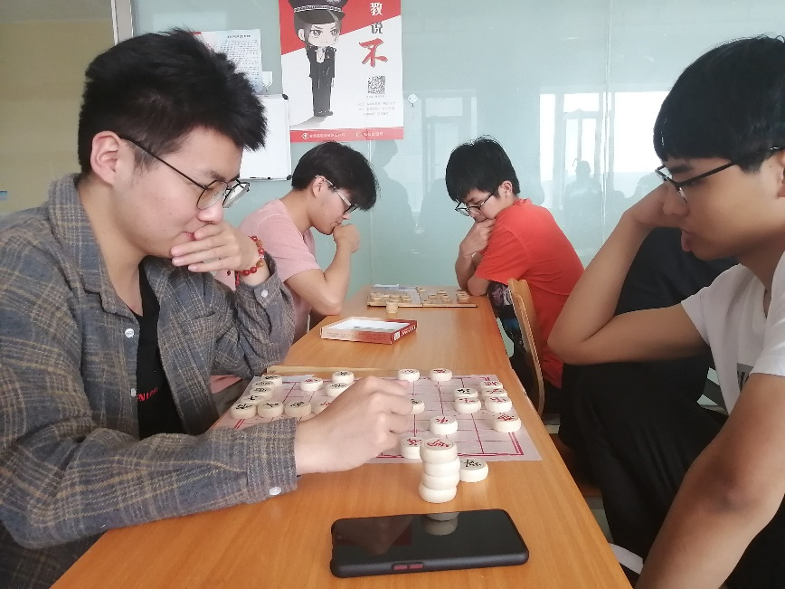 所谓“纹屏论道,乐在棋中”。2021年5月14日,负责本次活动的成员将比赛现场准备完毕,棋社的成员将参赛人员进行统计和分配。经过五轮的精彩比赛,最终根据个人积分产生14名获胜者进入学校决赛。比赛过程是十分精彩的,棋盘的两侧坐着博弈的两方,他们时而紧皱眉头,时而展眉轻笑。棋子的起伏轻落,无不体现着比赛双方的心智。耐心,是棋类爱好者的必备。
