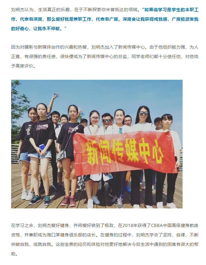 榜样力量丨刘明杰:探索生活的深与广