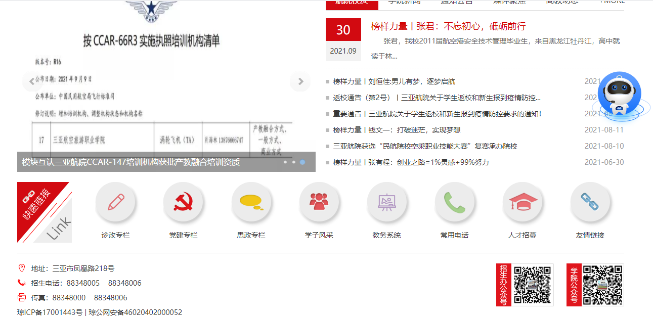 本年度,学校微信公众号发布信息147条,在向社会公众宣传学校办学教育成果的同时,也同步公开办学治校等方面的重要信息,如我校荣获全国职业院校技能大赛飞机发动机拆装与调试赛项二等奖、教师入选教育部继续教育课程思政教学名师、教学团队、获批教育部继续教育课程思政项目、荣获2021年海南省高等职业教育技能大赛教学能力比赛一等奖等。