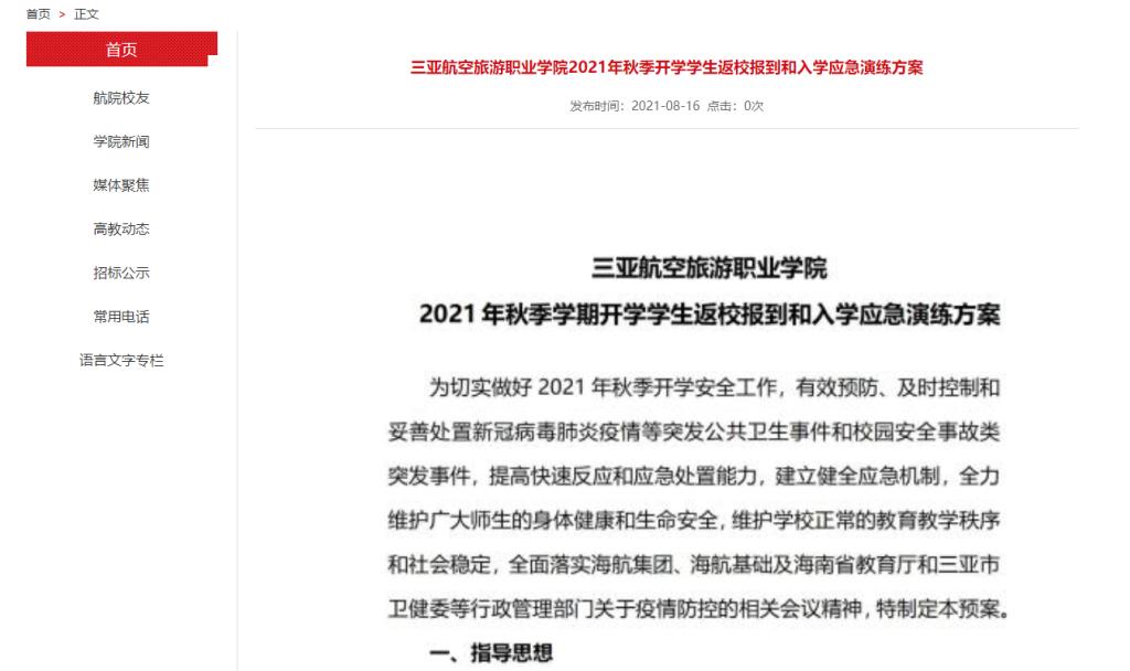 上图:2021年秋季学期开学学生返校报道和入学应急演练方案公开截图
