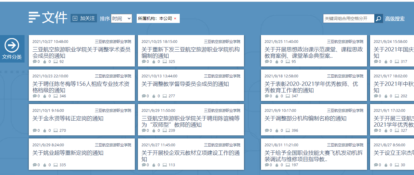 通过内部协助工作平台,集中统一发布学校通知、公告、公示等信息,公布学校制发的规范性文件和具体决定等。通过AWC万象城娱乐教务系统,推送学校考试通知、学生课表等信息,便利师生查询。